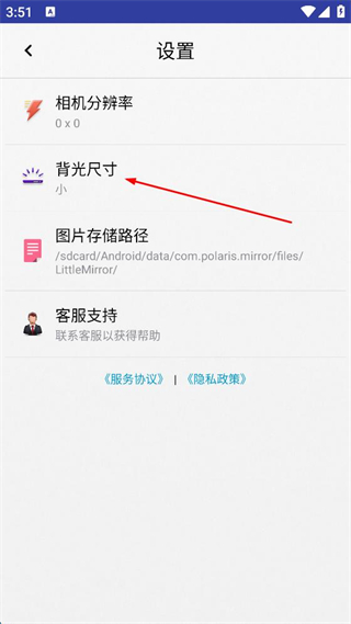 3、在設(shè)置頁面點擊“背光尺寸”選項,彈出背光尺寸選擇窗口。