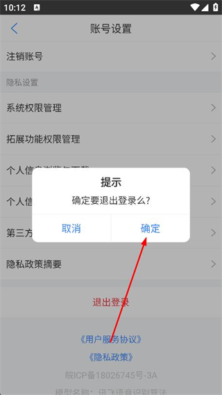 4、在彈出的提示框中,點擊確定即可完成退出登錄操作。