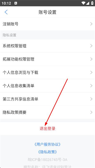 3、進入賬號設(shè)置頁面后,下滑找到并點擊退出登錄。