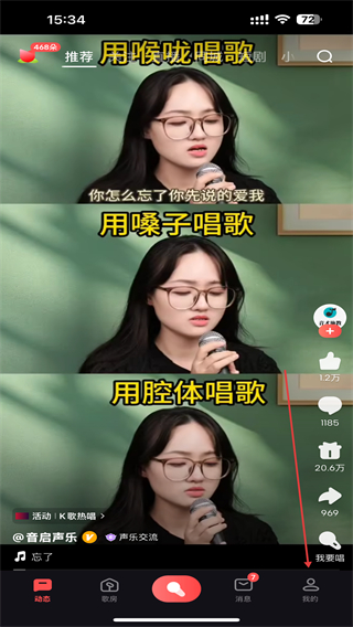 1、打開全名k歌的APP,進(jìn)入首頁點(diǎn)擊右下我的圖標(biāo)。