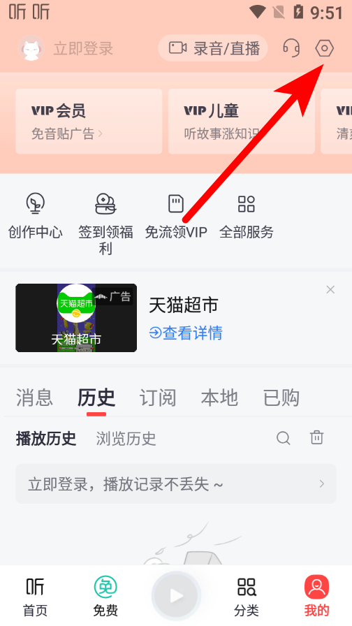1、在喜馬拉雅APP中點(diǎn)擊右下角我的,進(jìn)入個(gè)人頁(yè)面后點(diǎn)擊立即登錄。
