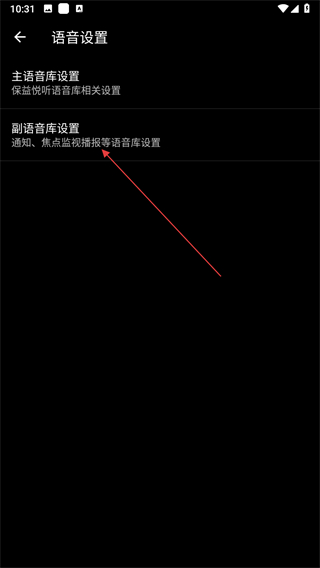 2、進(jìn)入語音設(shè)置頁面后,點擊副語音庫設(shè)置選項。