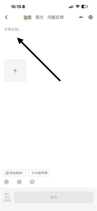 2、在分享此刻...的文本框中,輸入你想要發(fā)布的內(nèi)容,表達(dá)你的觀點(diǎn)、分享生活趣事等。
