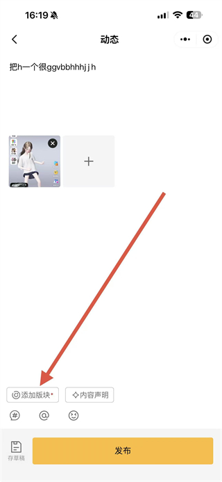 3、可以點(diǎn)擊下方加號(hào)添加圖片或視頻等內(nèi)容,豐富帖子形式;點(diǎn)擊添加版塊,選擇帖子對(duì)應(yīng)的版塊分類,方便精準(zhǔn)推送。