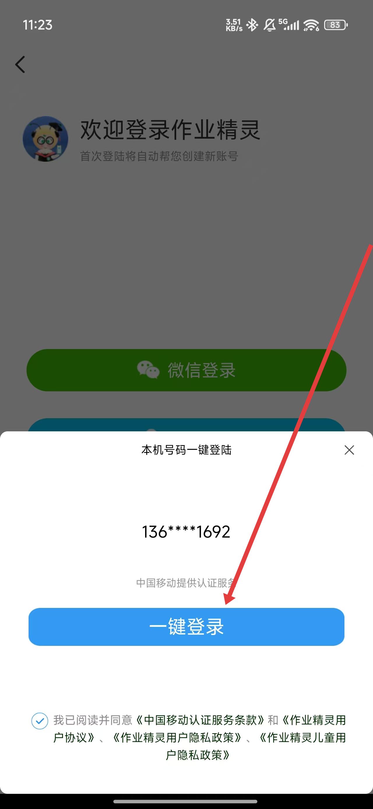 4、可以通過點擊一鍵登錄按鈕,完成使用手機號登錄操作。