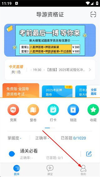 1、打開貝考導(dǎo)游app,點(diǎn)擊底部導(dǎo)航欄我的選項(xiàng)。