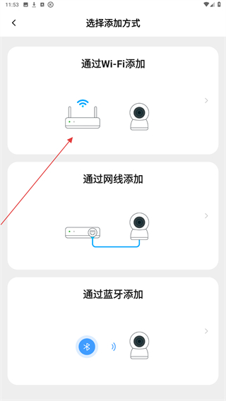 4、在選擇添加方式的界面內(nèi),點擊通過Wi-Fi添加的按鈕。