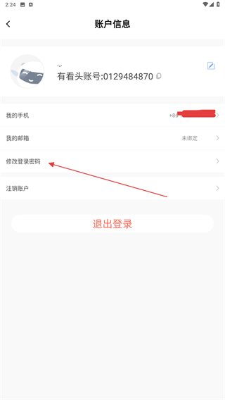3、在賬戶信息的界面內(nèi),點擊修改登錄密碼的按鈕。