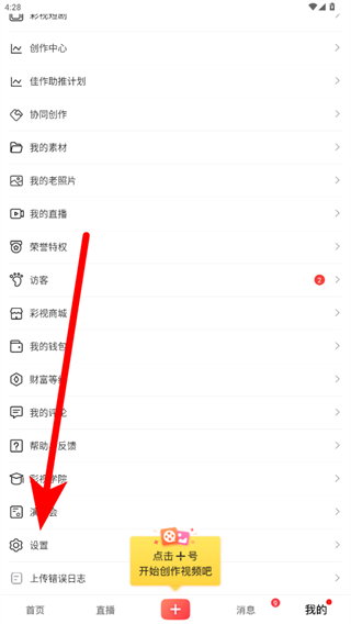 2、在我的頁面中,點(diǎn)擊設(shè)置選項(xiàng)。