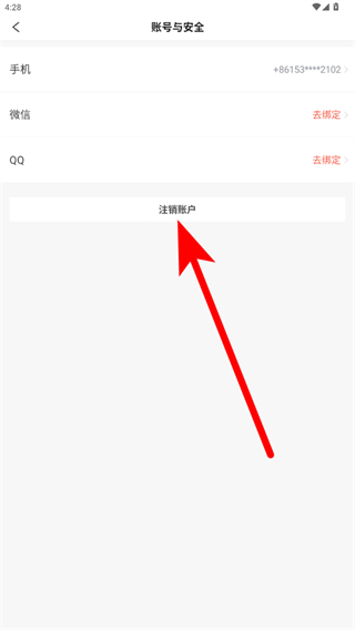 4、在賬號(hào)與安全頁面,點(diǎn)擊注銷賬戶選項(xiàng)。