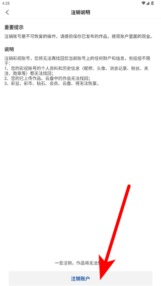 5、閱讀注銷說明后,點(diǎn)擊注銷賬戶按鈕,即可完成賬戶注銷操作。