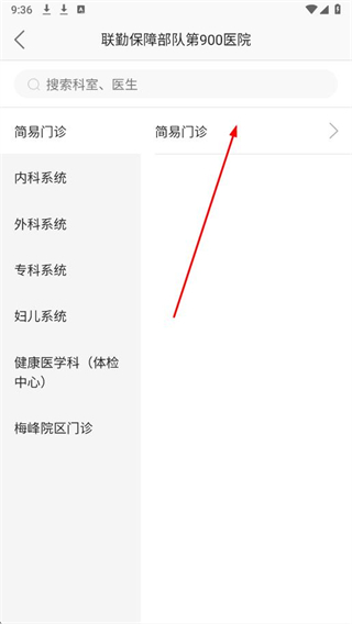 2、進(jìn)入醫(yī)院掛號(hào)頁(yè)面,選擇科室,如簡(jiǎn)易門(mén)診。