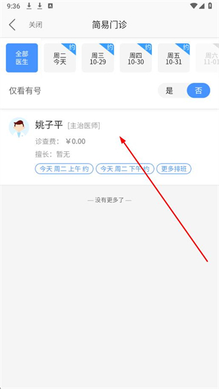 3、在科室醫(yī)生列表中,選擇想要掛號(hào)的醫(yī)生。