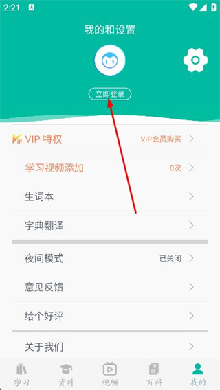 3、在我的和設(shè)置頁面中,找到并點擊立即登錄按鈕。