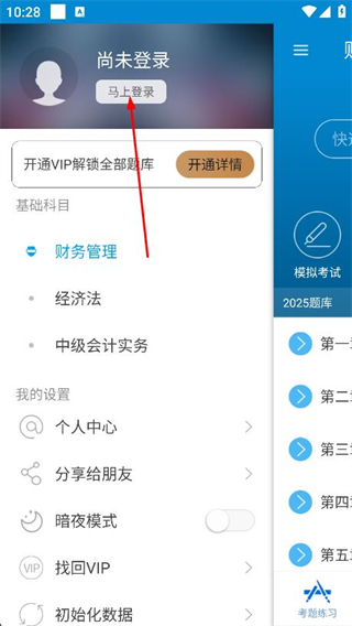 2、在彈出的側(cè)邊欄中,找到并點擊馬上登錄選項。