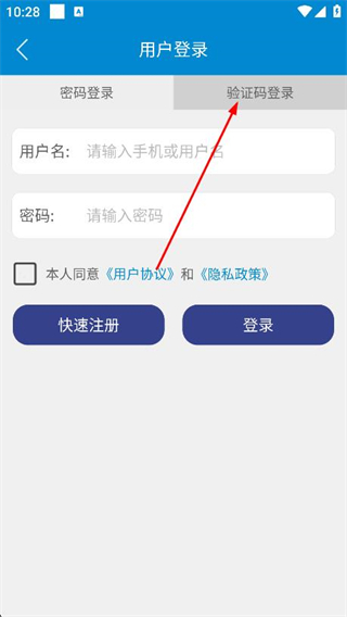 3、進(jìn)入用戶登錄頁面后,點擊上方驗證碼登錄選項。