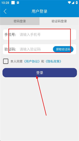 4、輸入手機(jī)號和驗證碼,點擊登錄即可完成登錄操作。