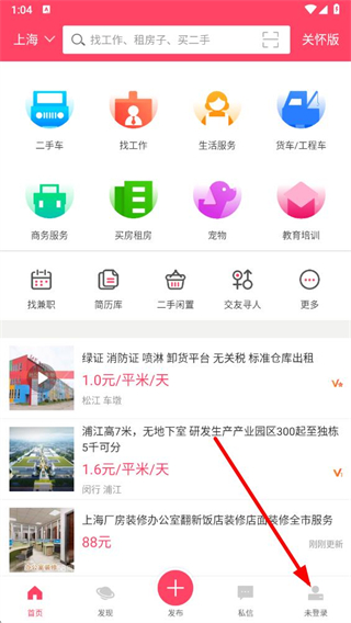 1、打開百姓網(wǎng)app,點(diǎn)擊右下角未登錄選項(xiàng),進(jìn)入登錄頁(yè)面。