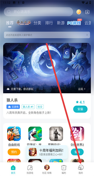 1、在進入到小米游戲中心首頁中,可以點擊我的按鈕,進入我的主頁。