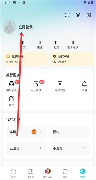 2、在進入到我的主頁后,可以點擊上方立即登錄按鈕,進行登錄操作。