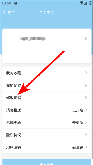 2、在個(gè)人中心頁面,點(diǎn)擊修改密碼按鈕,進(jìn)入找回密碼的頁面。
