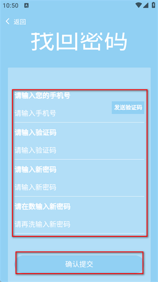 3、在頁面中輸入手機(jī)號(hào)等信息,最后點(diǎn)擊確認(rèn)提交,完成密碼修改操作。