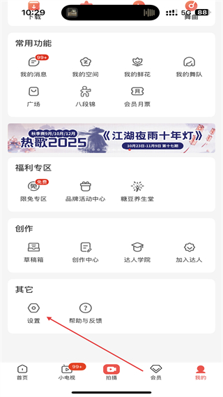 2、在我的頁面內(nèi),在其他下方點擊設(shè)置的功能按鈕。