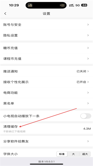 3、進入設(shè)置的界面內(nèi),找到并點擊清理緩存的功能按鈕。