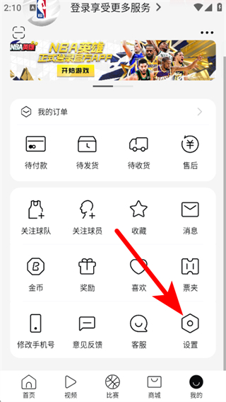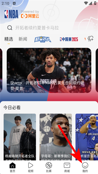 1、打開NBA app,需要在首頁點擊底部我的,進入個人的頁面。