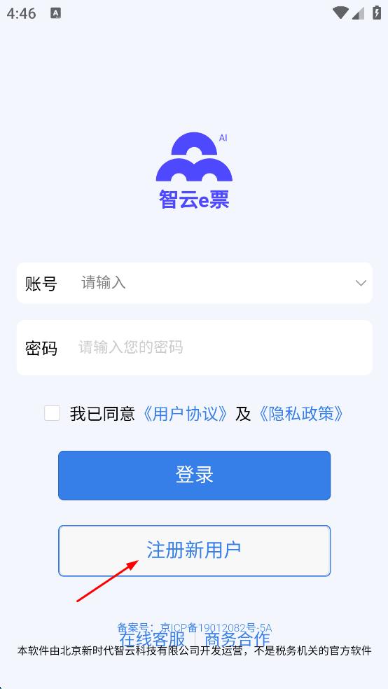 2、在登錄界面,點(diǎn)擊“注冊(cè)新用戶”選項(xiàng),進(jìn)入注冊(cè)新用戶頁面。