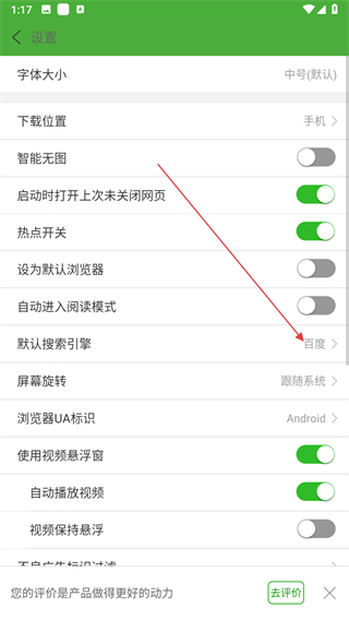 4、進入頁面,點擊選擇更換百度或者搜狗引擎。
