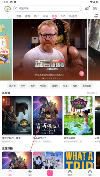 1、打開嗶哩嗶哩的APP,進(jìn)入首頁(yè)點(diǎn)擊上方影視的標(biāo)簽。