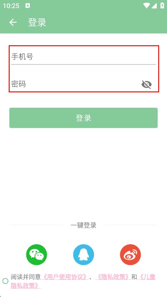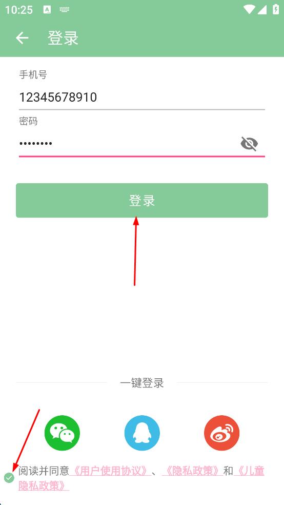 4、勾選閱讀并同意用戶使用協(xié)議隱私政策和兒童隱私政策,點擊登錄。