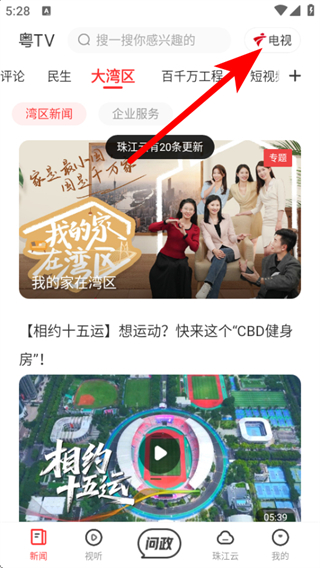 1、打開觸電新聞app,在首頁點(diǎn)擊電視,進(jìn)入電視板塊的頁面。