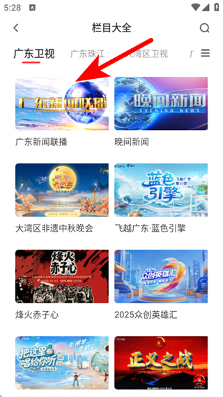 2、在電視板塊頁面找到欄目大全,選擇目標(biāo)節(jié)目,進(jìn)入節(jié)目播放頁面。