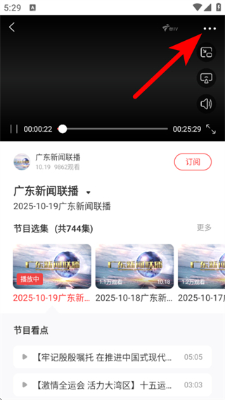 3、在節(jié)目播放的頁面,需要點(diǎn)擊右上角的三個(gè)點(diǎn),彈出功能菜單。