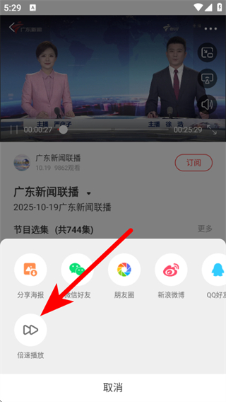 4、在功能菜單中,需要點(diǎn)擊倍速播放,即可設(shè)置并使用倍速播放功能。