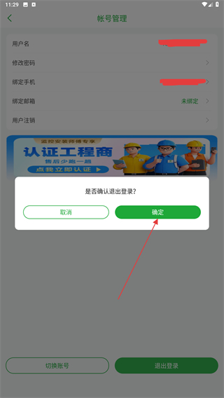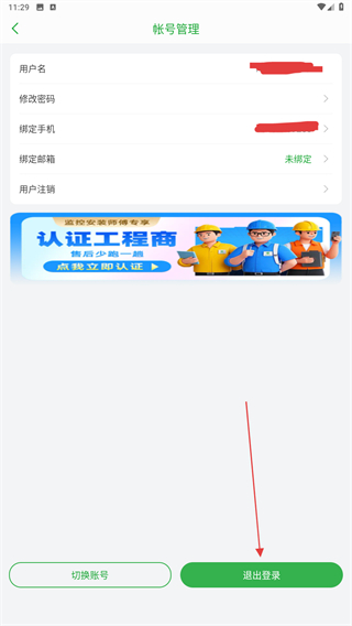3、進(jìn)入賬號管理的界面內(nèi),點擊下方退出登錄的功能按鈕。