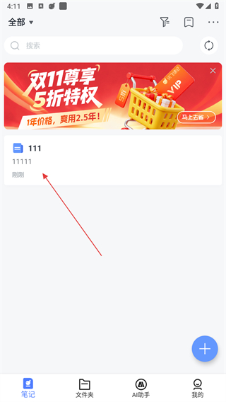 4、返回主頁面,即可看到創(chuàng)建好的筆記文檔。