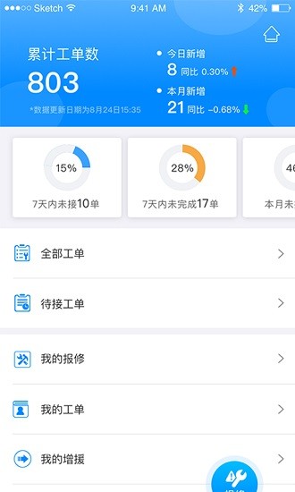 3、支持一鍵報(bào)修,當(dāng)設(shè)備出現(xiàn)預(yù)警信息時(shí)即可進(jìn)行報(bào)修申請(qǐng)。
