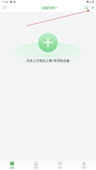 1、啟動(dòng)手機(jī)遠(yuǎn)程監(jiān)控的APP,進(jìn)入首頁(yè)點(diǎn)擊右上+的圖標(biāo)。