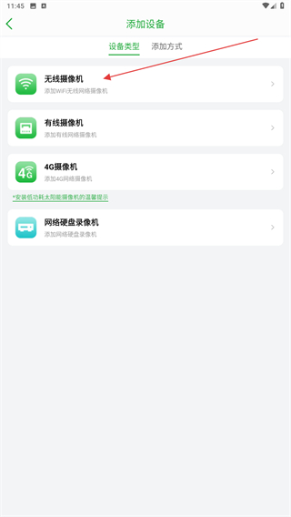 3、在添加設(shè)備的界面內(nèi),選擇并點(diǎn)擊無(wú)線攝像機(jī)的按鈕。