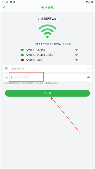 4、在該頁(yè)面內(nèi),輸入Wi-Fi密碼后再點(diǎn)擊下一步即可完成。