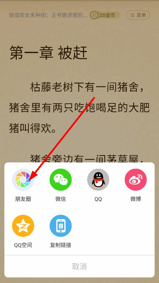 3、接著會(huì)彈出分享渠道選擇框,可選擇分享至朋友圈、微信、QQ、微博、QQ空間等,點(diǎn)擊對(duì)應(yīng)的圖標(biāo),按照提示完成分享操作。