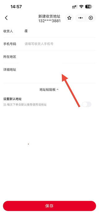 4、在新建收貨地址頁面,修改詳細(xì)信息,點擊保存按鈕即可完成地址信息修改。