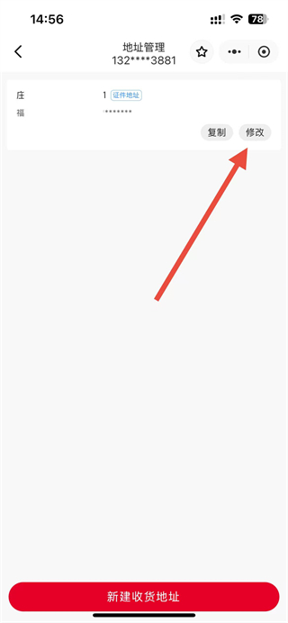 3、在地址管理頁面中,找到要修改的地址,點擊其右側(cè)的修改選項。