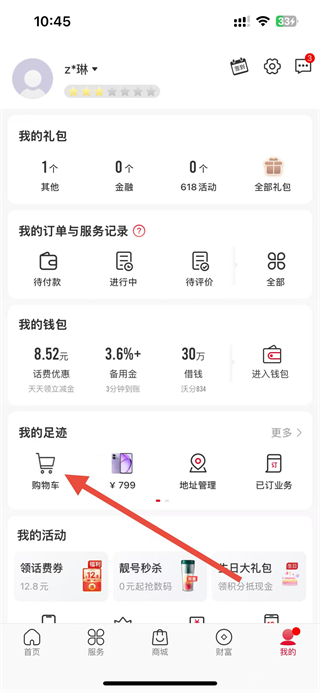 2、在個人頁面點擊購物車選項,進入購物車頁面。