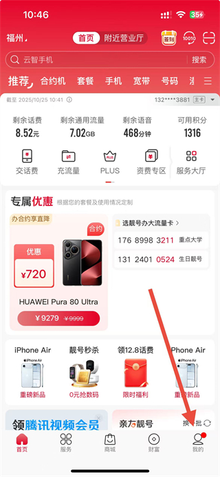 1、在中國聯(lián)通app首頁點擊我的選項,進入個人頁面。