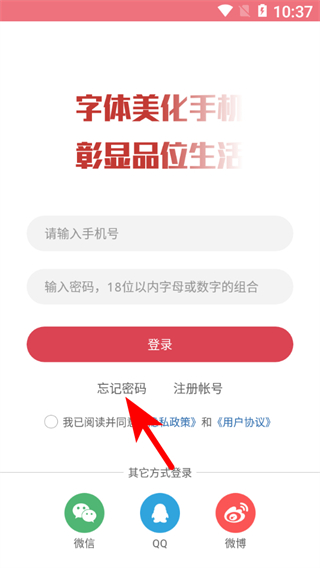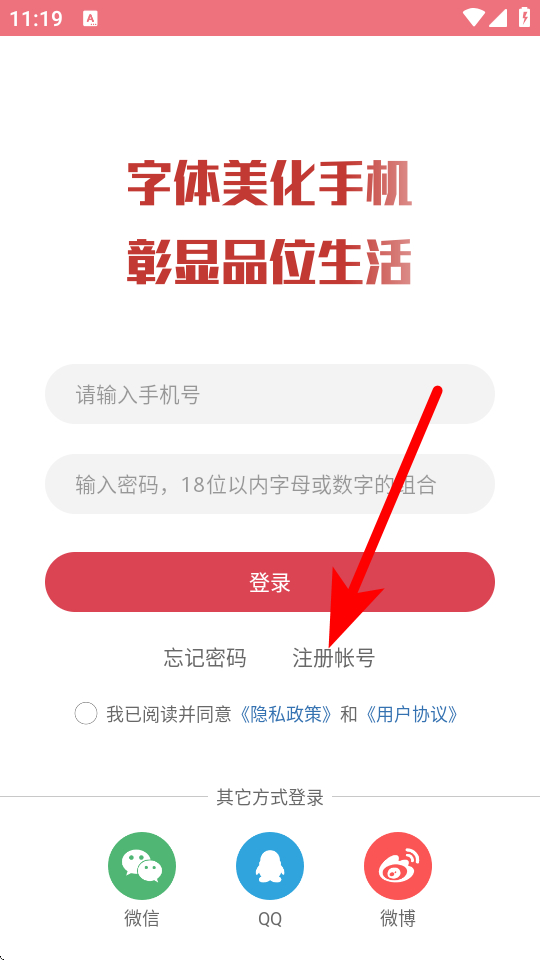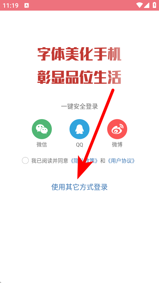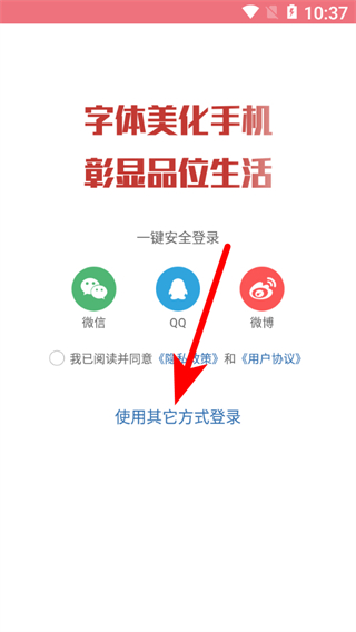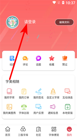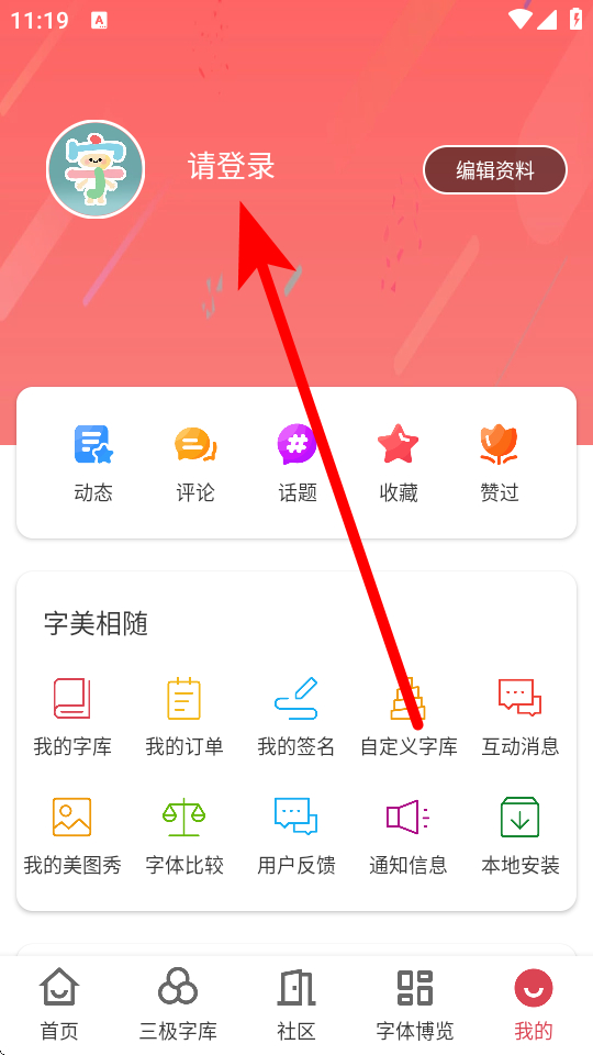 1、在字體美化大師個人界面,點擊請登錄區(qū)域,進(jìn)入登錄選擇頁面。