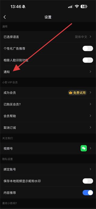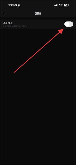 4、進入通知頁面后,點擊消息推送右側(cè)的開關(guān)按鈕,將其開啟,即可開啟通知功能。